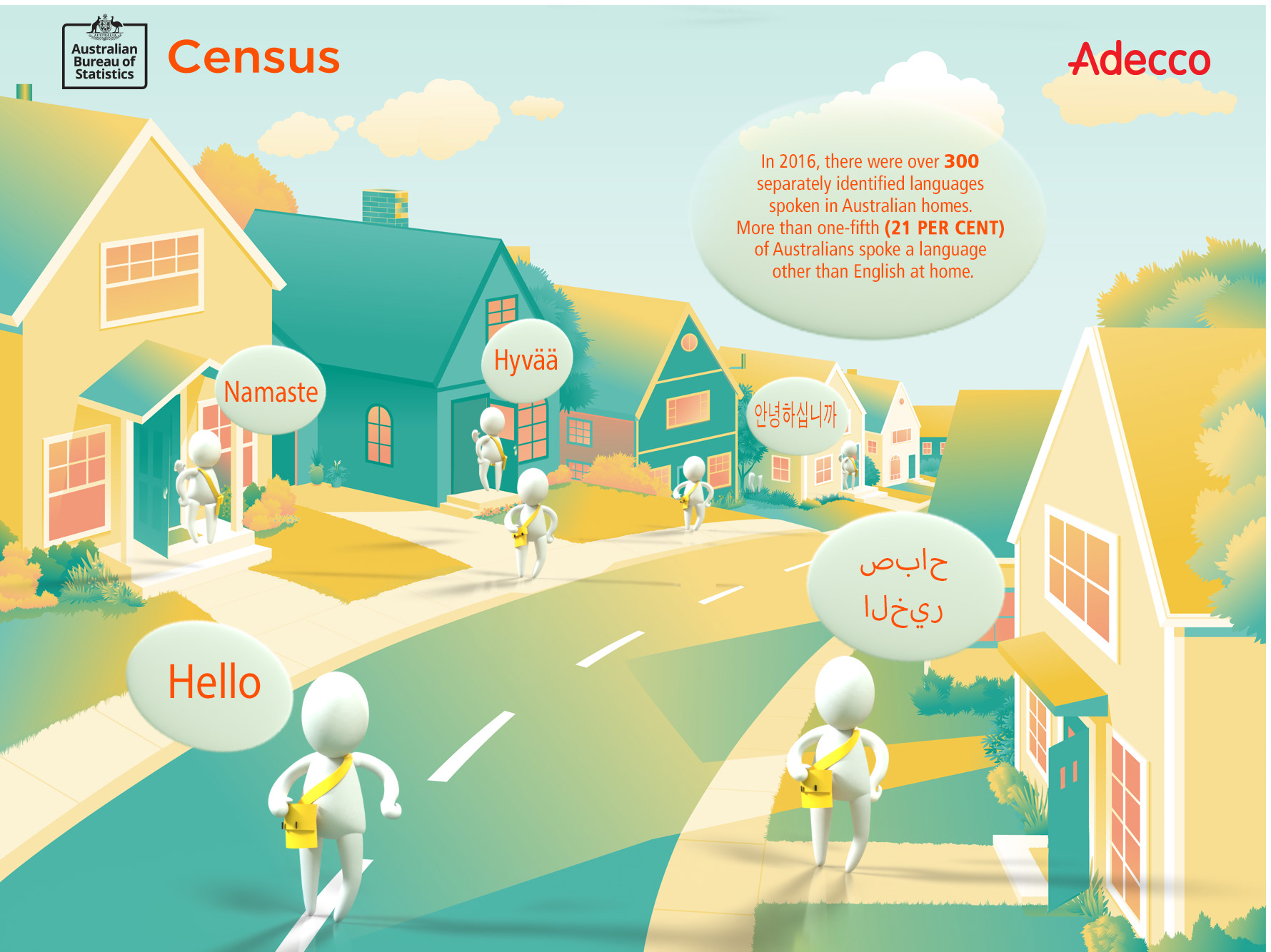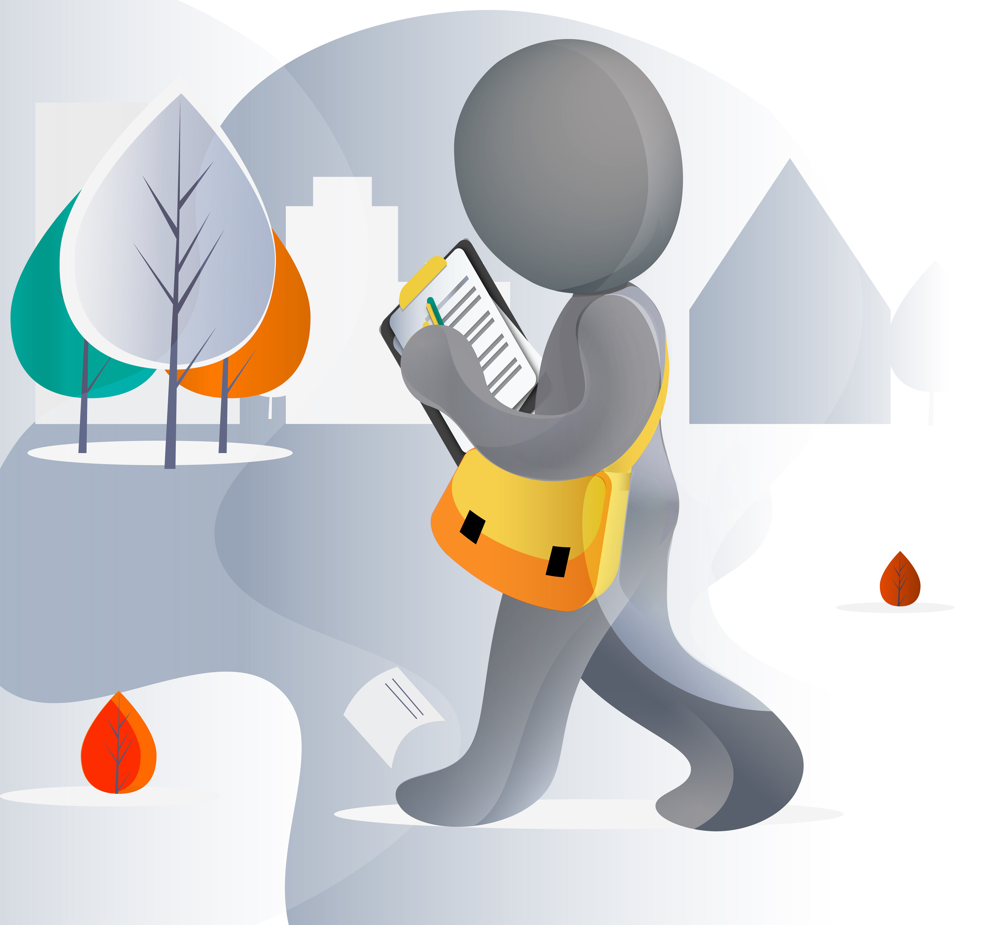Illustrations of Census caricature in variety of settings drawn in Illustrator